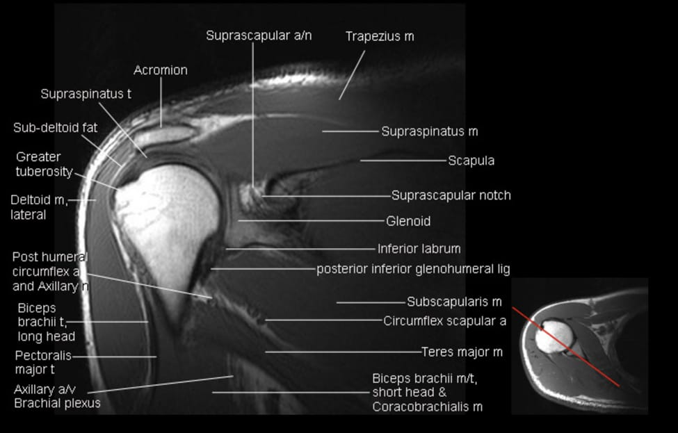 Here is an axial image, meaning we are looking down at the shoulder from above.